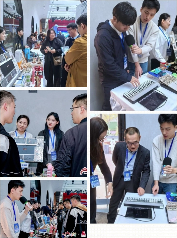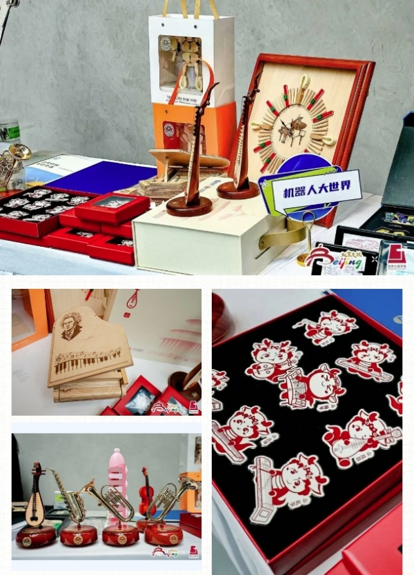 活动现场的工业旅游创意产品展售市集上,星海展位亮点纷呈:钢琴零件 DIY 机器人摆件、“小龙人”系列文创、乐器造型拼豆等文创衍生品,独具特色的沉浸式研学项目以及星海弹弹TupTup弹唱机。
