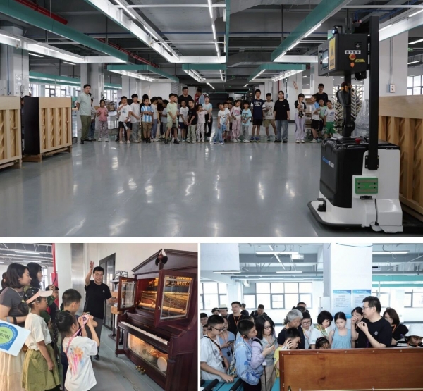 钢琴自动生产线上的智能运转,胶囊调音间,现代化立式钢琴的生产线, AGV智能钢琴运输设备,展现了北京 “智造” 与传统工业的创新共生。