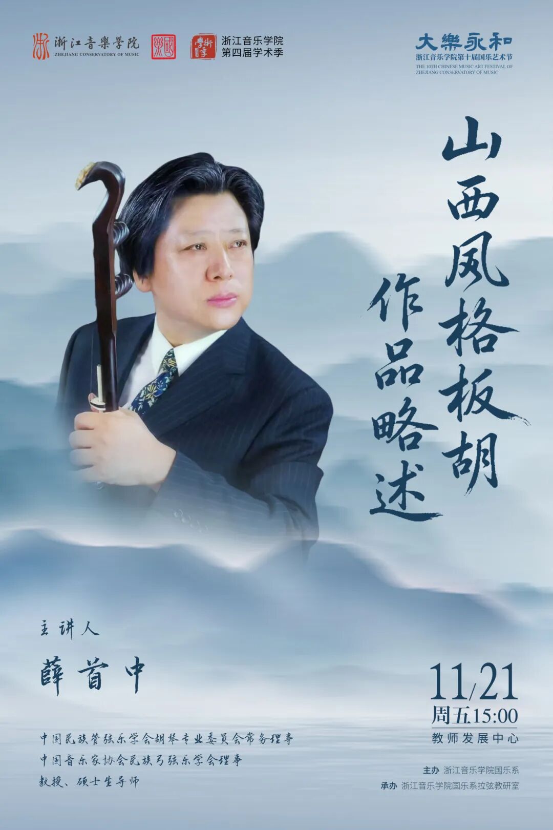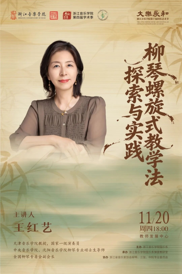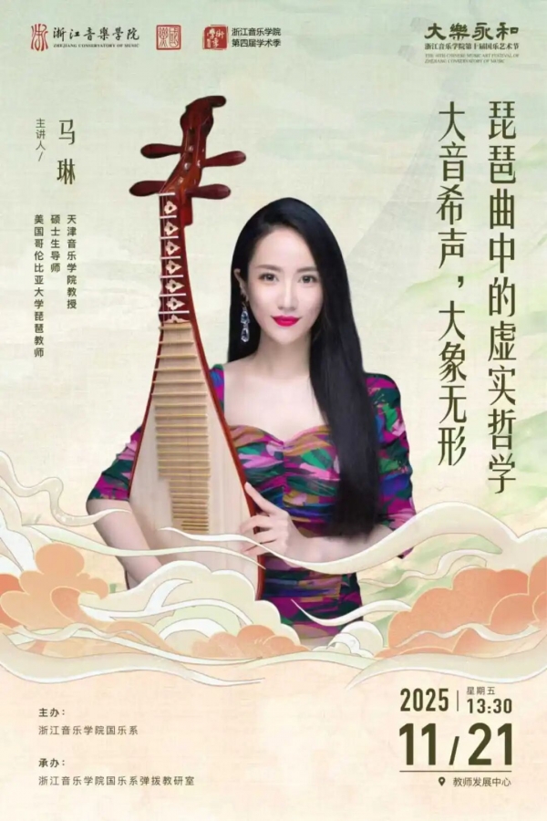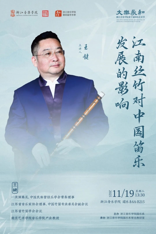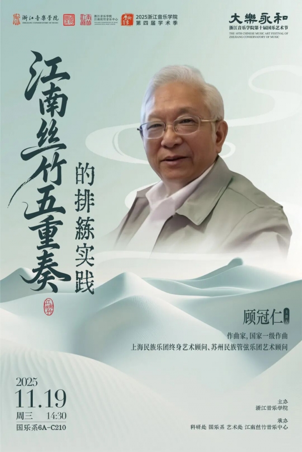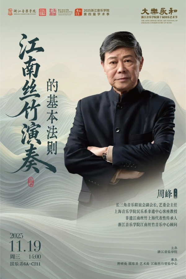 为传承中华优秀传统文化、推动中国民族音乐高质量发展,由浙江音乐学院主办,国乐系承办,艺术处、科研处、教务处、民族室内乐团、艺术指导教学部、音乐工程系共同协办的浙江音乐学院第十届国乐艺术节,于2025年11月17日至22日举办。