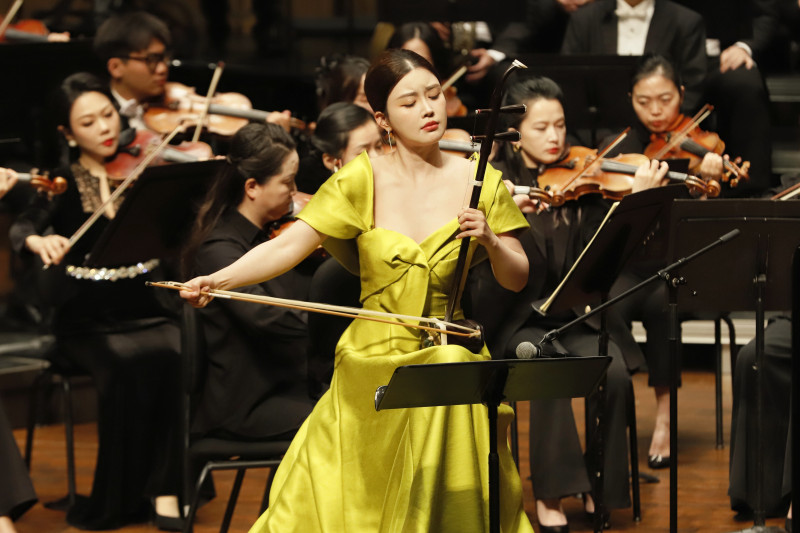 11月22日晚,2025湘江国际音乐艺术季(五)——东方韵律·西方华章经典国乐交响音乐会在长沙音乐厅·湘江大厅上演。