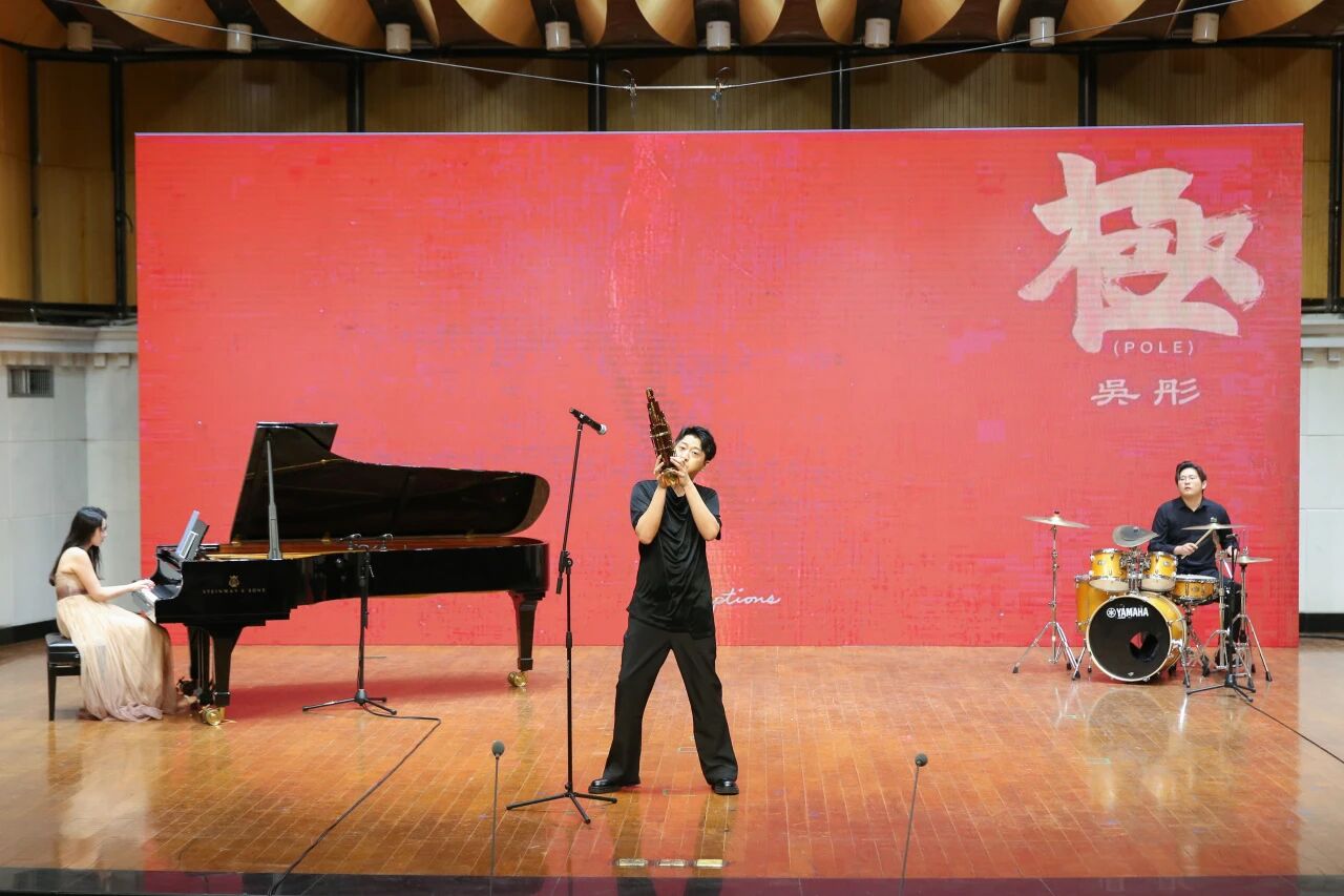 笙独奏《极》(吴彤作曲)由哈尔滨音乐学院教师金子琦演奏(钢琴艺术指导:潘雨萌),广西艺术学院学生刘铭宇加入架子鼓伴奏。用架子鼓的现代音乐语言展现笙的“极致动感”,以简洁而富有张力的旋律,传递出民族音乐的深邃意境。