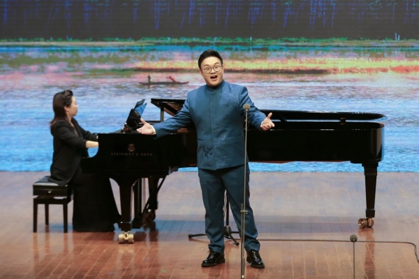 男声独唱《乌苏里船歌》(胡小石、郭颂作词,汪云才、郭颂作曲)由哈尔滨音乐学院教师丁明超演唱,他以醇厚的嗓音,将东北少数民族的生活风情与对家乡的热爱尽情抒发,侯汀担任钢琴伴奏,悠扬的琴声与歌声相得益彰,再次让观众感受到北方民族音乐的独特魅力。