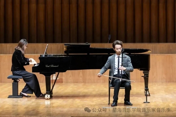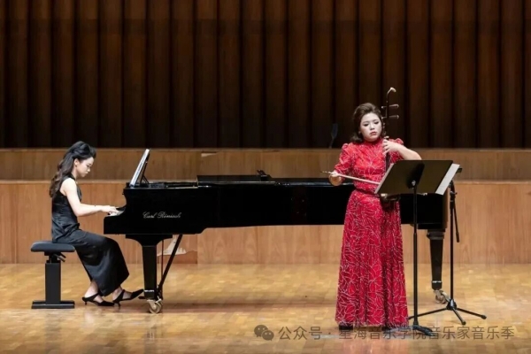 《弦意岭南》由作曲家王丹红创作,龙壬哲老师与陈晓萌老师合力呈现。作品深度挖掘广东民间音乐精髓,融入《平湖秋月》的清雅与客家民歌《落水天》的质朴,以西方交响编配技法实现 “土风升华”。二胡的如泣如诉与交响化的和声铺陈,勾勒出一幅笔墨淋漓的岭南水墨画卷,传统韵味与现代审美相得益彰。