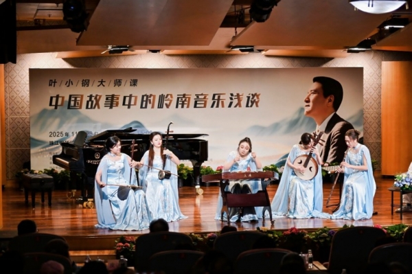 11月23日下午,南国羊城花团锦簇、粤韵悠扬,珠江钢琴创梦园音乐厅座无虚席,洋溢着浓厚的艺术氛围。中国音乐家协会主席、香港中文大学(深圳)音乐学院院长叶小钢,以“中国故事中的岭南音乐浅谈”为题开讲大师课。活动以“现场演奏+夹叙夹议”的形式,深入浅出解析岭南音乐的历史变迁与时代创新,探讨非遗保护与当代创作的融合路径,为现场数百名音乐爱好者、业内从业者及高校师生带来了一场兼具思想深度与艺术感染力的文化盛宴。