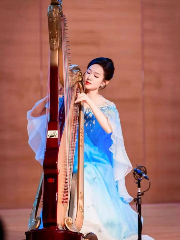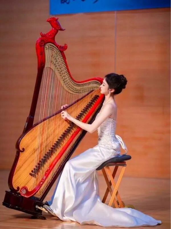 张家赫与林嫣两位箜篌专业学生,师从贺虹教授。张家赫(2023级本科)以“凤鸣赫奕”为主题,带来《清明上河图》《思凡》《袍修罗兰·游戏人间》等曲目,横跨古今的选曲与跨界合作,展现了箜篌的多元表现力,其凭借扎实功底斩获第八届“敦煌杯”箜篌专业组金奖等荣誉,还多次登上央视及重大活动舞台。林嫣(2023级本科)亦学习箜篌艺术多年,在附中时期便已崭露锋芒,曾斩获“国韵杯”民乐之星等多项大奖。音乐会上,她演绎了《袍修罗兰·如来藏》《龟兹乐鸣》《阳光照耀着塔什库尔干》等作品,东西方音乐语汇碰撞交融,尽显古老乐器的当代活力。
