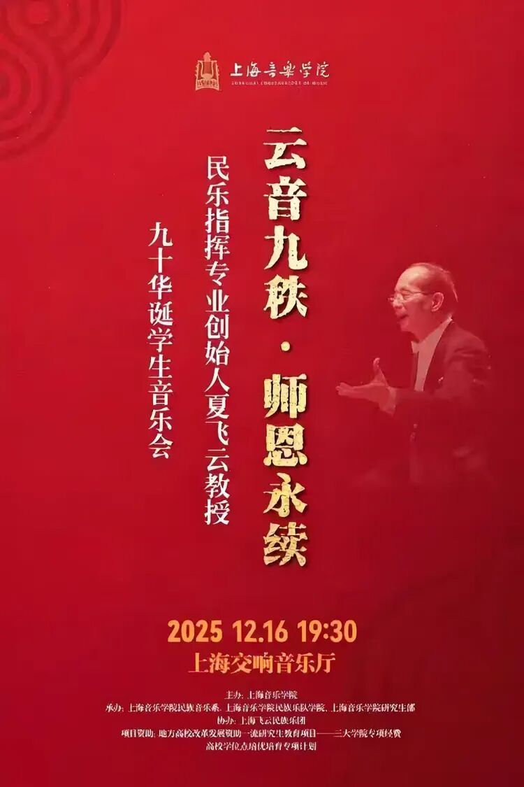 这场音乐会,不止是一场《庆典》,更是一次传承的见证。九轶云音里,是夏飞云教授对民族音乐指挥事业的毕生耕耘;师恩永续间,是一代代弟子接过的接力棒。曲终人未散,那回荡在剧场的民乐声,正是对这份师恩与传承最美的回响。