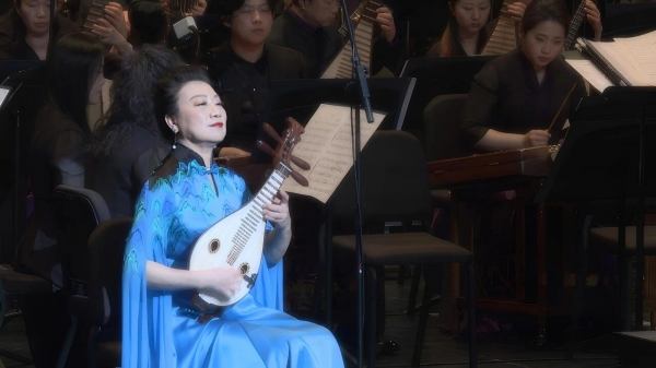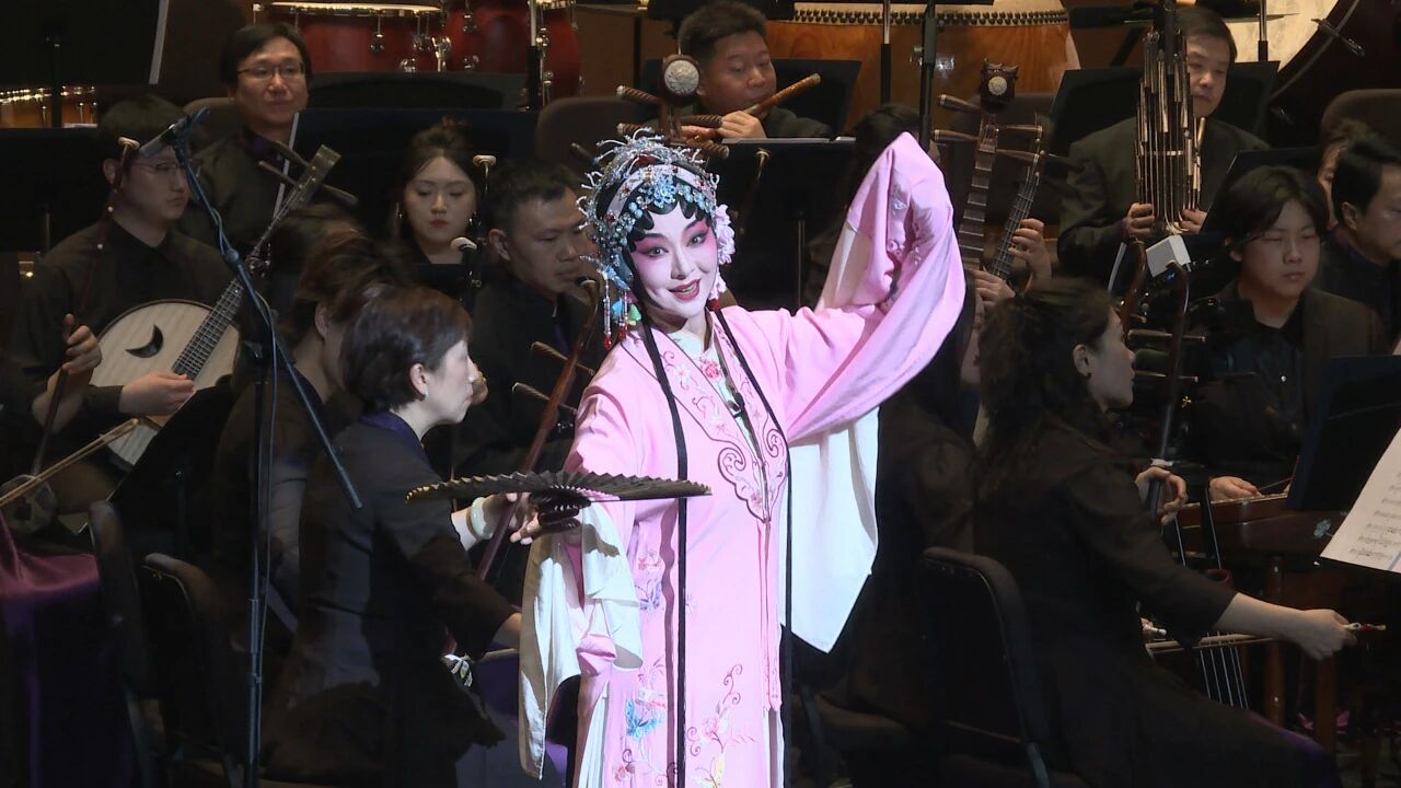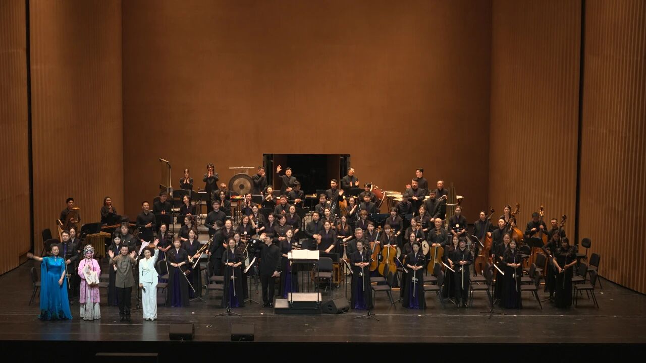 更值得一提的是,音乐会曲目将民族音乐与戏曲元素完美融合。昆曲《皂罗袍》婉转悠扬,由昆曲名家朱璎媛演唱;京剧《梨花颂》大气典雅,由梅派第三代传人、京剧表演艺术家胡文阁献声;柳琴演奏家崔军淼与乐队带来的《雨后庭院》,柳琴动听的音色和非凡的演奏技巧,描绘出细雨从天飘落,晶晶亮的雨滴洒落在草地上和花朵上,将雨后彩虹如梦幻般的景象呈现在观众眼前。整场演出既彰显民族音乐的深厚底蕴,又充满时代气息与创新活力。