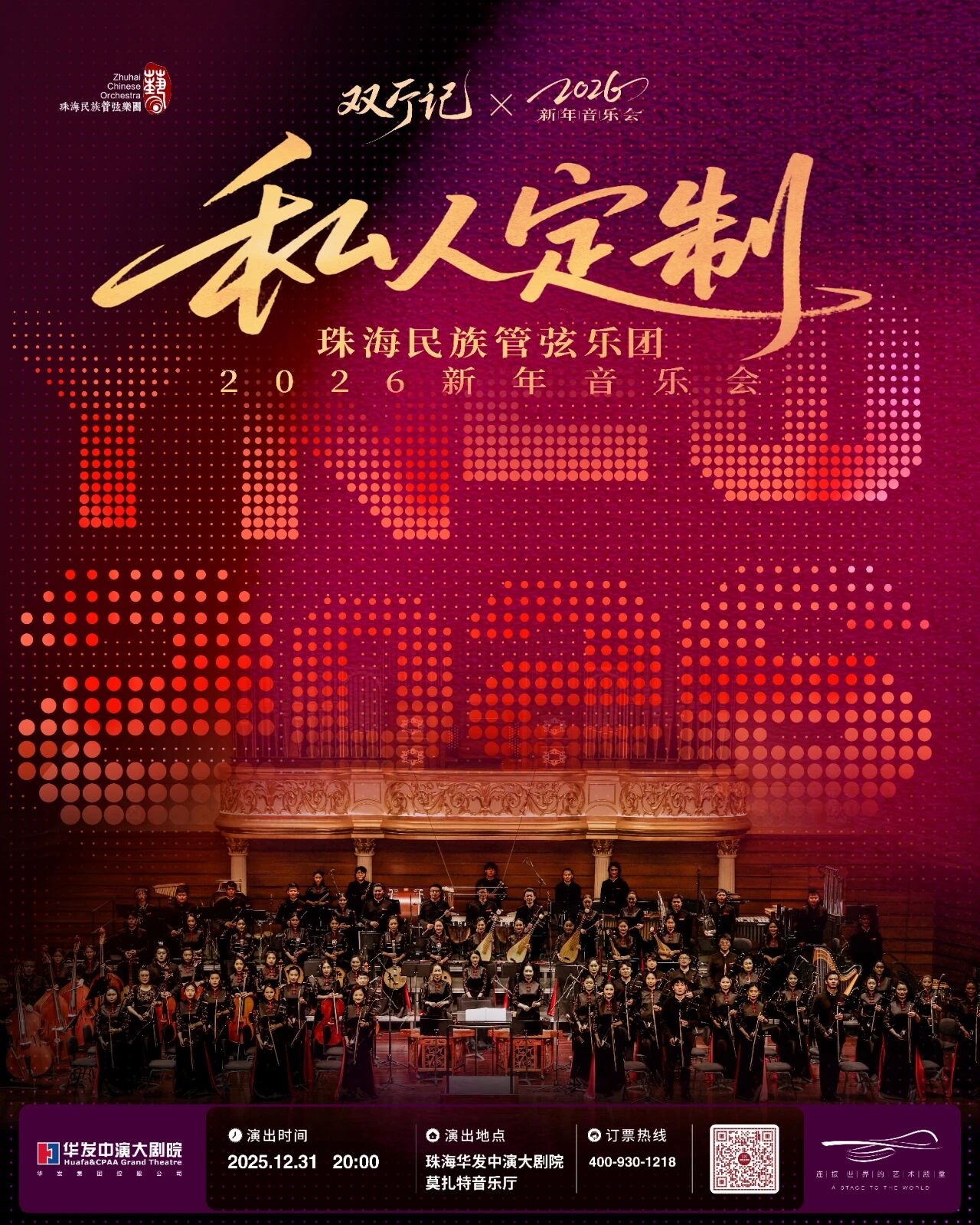 12月31日,让我们以一场“私人定制”的国乐盛宴,为2025年落下帷幕。与家人朋友一同沉浸在悠扬的丝竹声中,告别旧岁,迎接崭新的2026。这里有你亲手票选的热爱,也有乐团倾心呈现的诚意,每一段旋律都是送往新年的美好祝福~