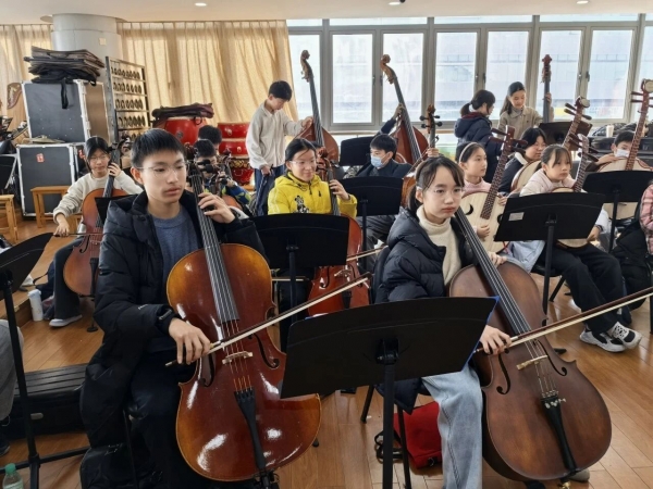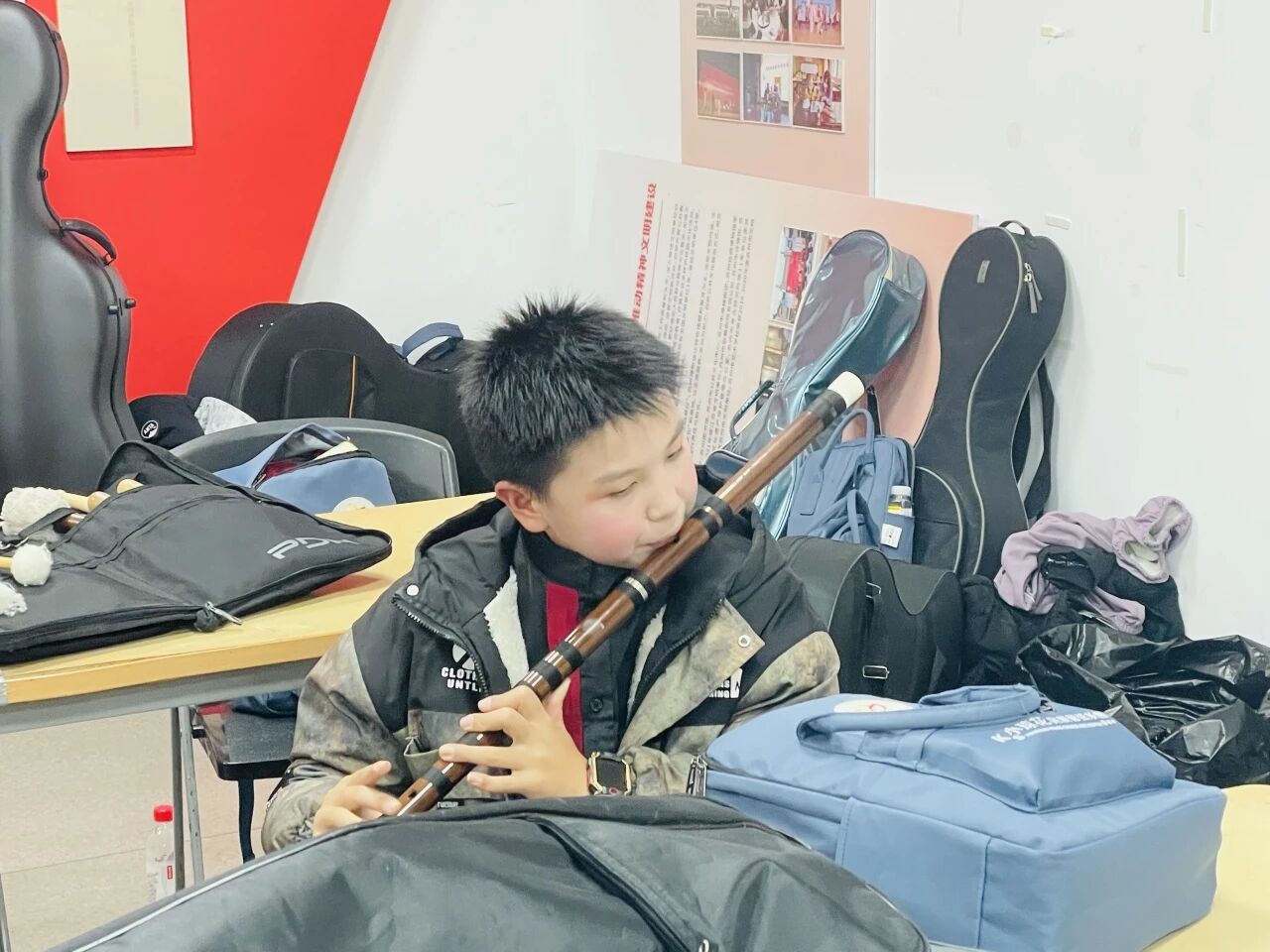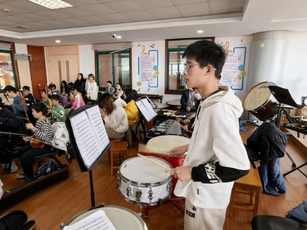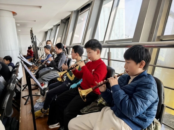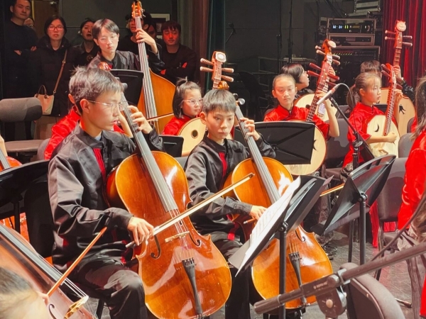 此次演出,乐团共派出61名A团团员,在13位随队老师和6位家长志愿者的协助下,以80人的阵容参加此次演出。孩子们以一首民族管弦乐合奏作品《再唱山歌给党听》赢得了现场阵阵掌声。初生牛犊不怕虎,小乐手们毫不怯场,以饱满的自信和娴熟的技艺,圆满完成了整首作品的演绎,展现出青少年民乐传承的蓬勃朝气。