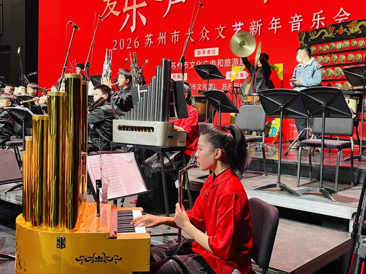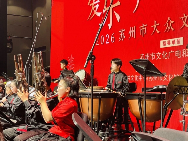 为持续提升“美遇苏州”文化惠民工程成效,为“爱乐之城” 公共文化惠民工程奏响序曲,2025年12月29日19:30, 由苏州市文化广电和旅游局主办,苏州市公共文化中心(苏州市文化馆)承办,苏州民族管弦乐团作为执行方,在苏州公共文化中心剧院成功举办了“美遇苏州·爱乐之声”2026苏州市群英新年音乐会。