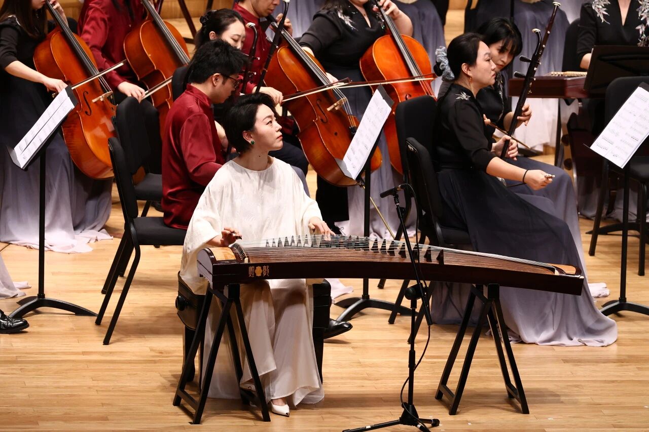 节庆的余温尚在回荡,青年演奏家宋心馨带来的古筝协奏曲《苍歌引》便迅速将听觉审美从群体的欢愉引向个体的内省。作曲家陈哲笔下的“春”,与江南烟雨般的温软不同,是一种破土而出的顽强生命力。宋心馨指尖流淌出的音符,极具现代张力与爆发感,尤其是快板段落中与乐队形成的复调对抗,仿佛是个体生命在时代洪流中的挣扎与呐喊,为整场演出注入了第一层严肃的哲学底色。