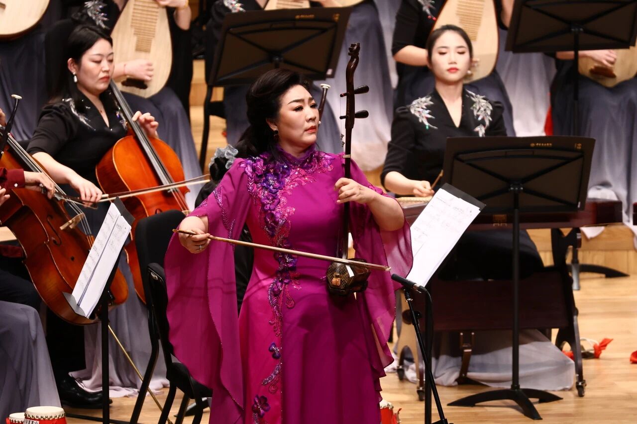 当宋飞教授手中的琴弓触弦,二胡与乐队作品《巾帼》的旋律如江河奔涌,音乐会的情感叙事自此完成了从诗意抒怀到宏大叙事的质变升华。作曲家王云飞以“巾帼”为名,不仅是对古代女性英雄的深情礼赞,更是向新时代女性力量的庄严致敬。在宋飞出神入化的演绎下,那些我们记忆中简化为符号的巾帼英豪,逐渐挣脱了单薄的概念桎梏,升华为有血有肉、有泪有魂的英雄群像。慢板段落如泣如诉,似春蚕吐丝般细腻缠绕;快板章节则如金戈铁马,奏响了从古至今每一位女性代表“万里赴戎机”的壮志豪情。此刻,二胡早已超越了乐器的物理属性,化身为一部流动的历史叙事长卷,以其穿透时空的音声之力,引领全场观众与中华民族坚韧不屈的人格特质产生深沉而强烈的共鸣。