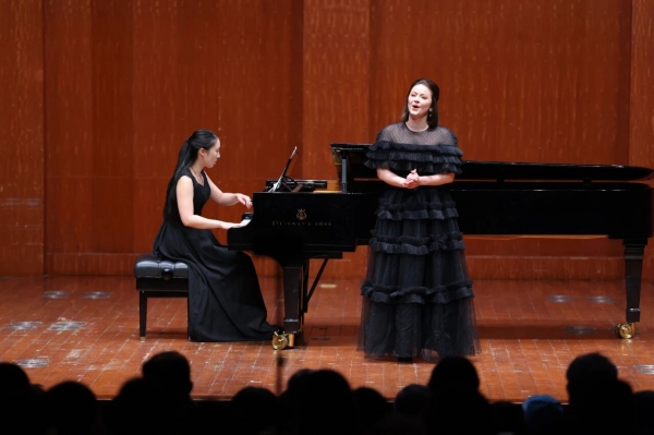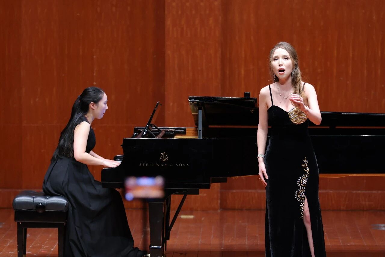 音乐会在气势恢宏的打击乐《云之南》中拉开帷幕,铿锵有力的节庆鼓点,瞬间点燃现场氛围。随后,一系列融合中外特色与经典韵味的曲目精彩上演。歌曲《槐花几时开》《阿扎尔的咏叹调》《别唱,美人》深情款款、直抵人心;马头琴与古筝合奏作品《贤后满都海》、中提琴独奏《春之歌》旋律优美、各具韵味。