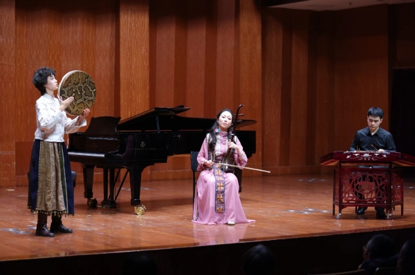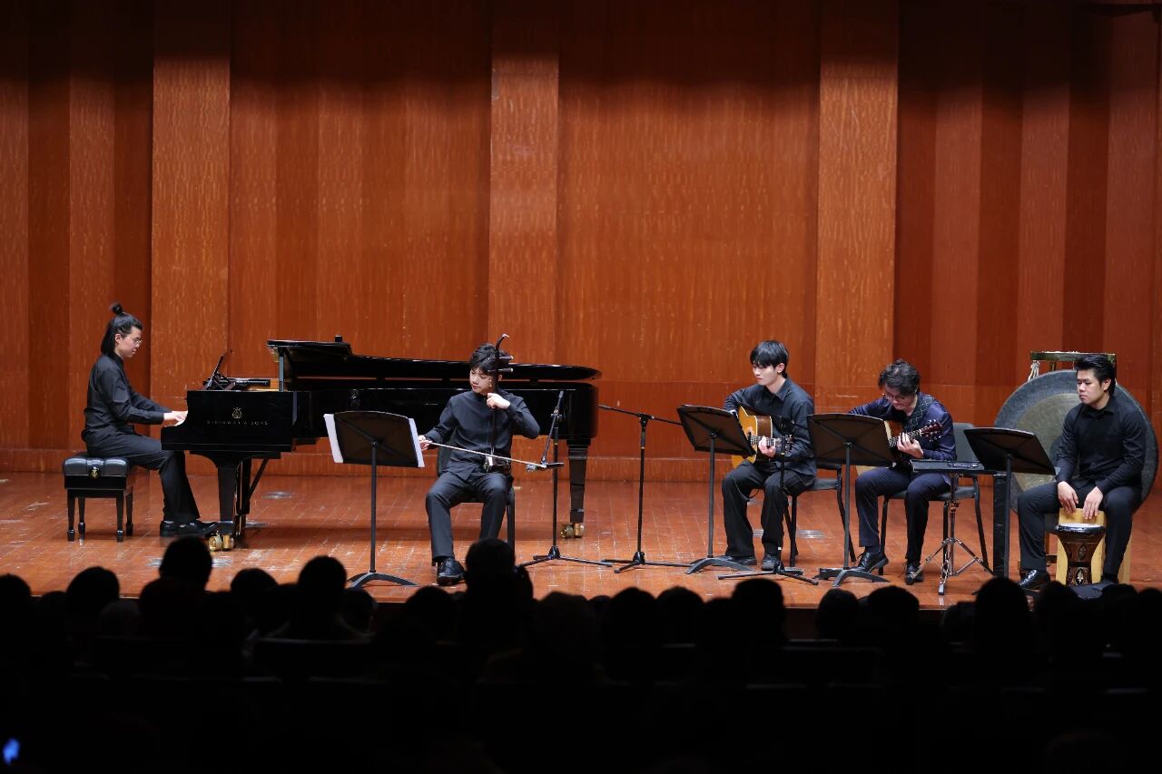 上半场还奏响门德尔松的《D小调钢琴三重奏》、勃拉姆斯的《A小调三重奏》等西洋经典曲目,以严谨的结构与饱满的情感,展现了古典音乐的永恒魅力。值得一提的是,作品《塞尔达传说》组曲与《云舒》均出自上音国际学生之手,将传统乐器与现代创作理念巧妙融合,充分展现出上音学生的艺术创造力。