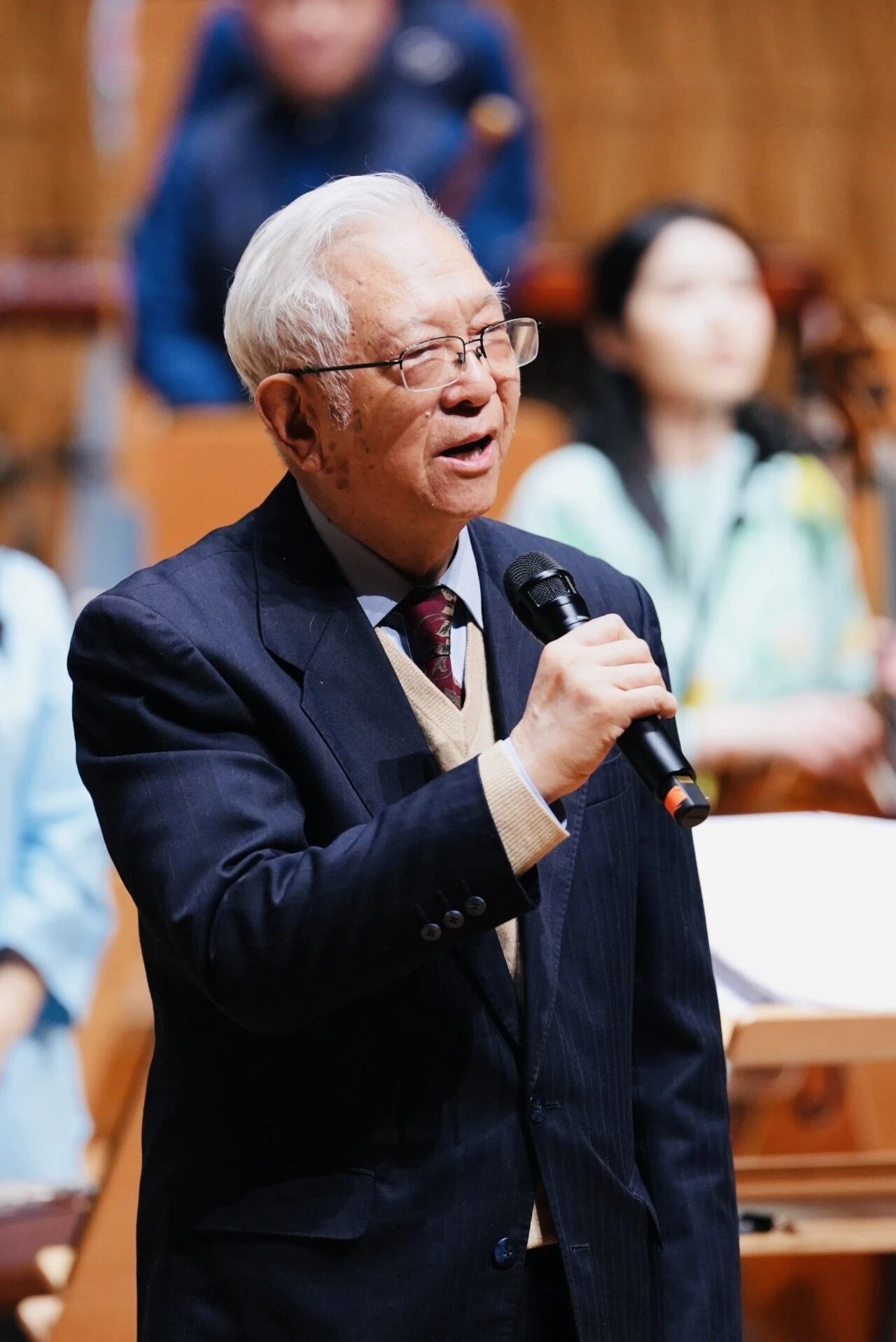 音乐会最后,顾冠仁先生亲自登台指挥《骏马奔驰》与《三六》两首返场曲目,以八旬之龄挥洒自如,尽显老一辈艺术家的深厚功力与赤诚情怀,赢得全场热烈的掌声与敬意。