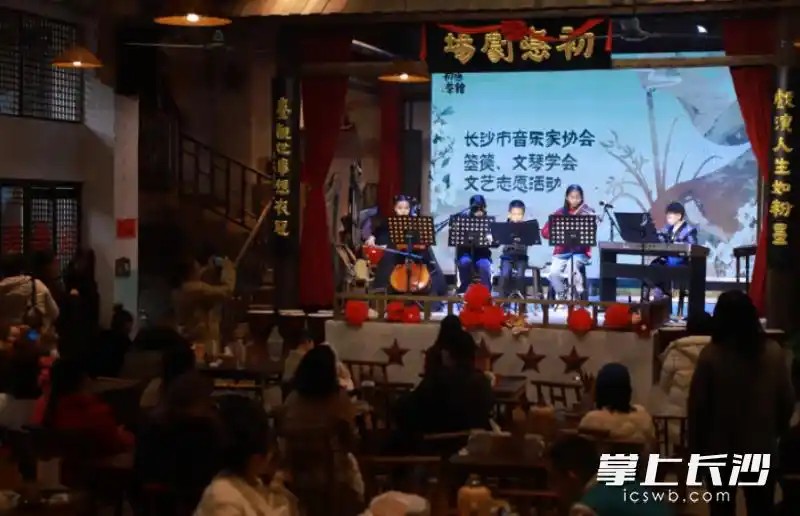 冬日午后,长沙县开慧镇“初恋茶馆”里炉火正旺。1月17日,一场由长沙市音乐家协会箜篌学会、文琴学会带来的公益演出,将千年雅韵与当代新声,注入这座由老供销社改建的乡村茶馆。