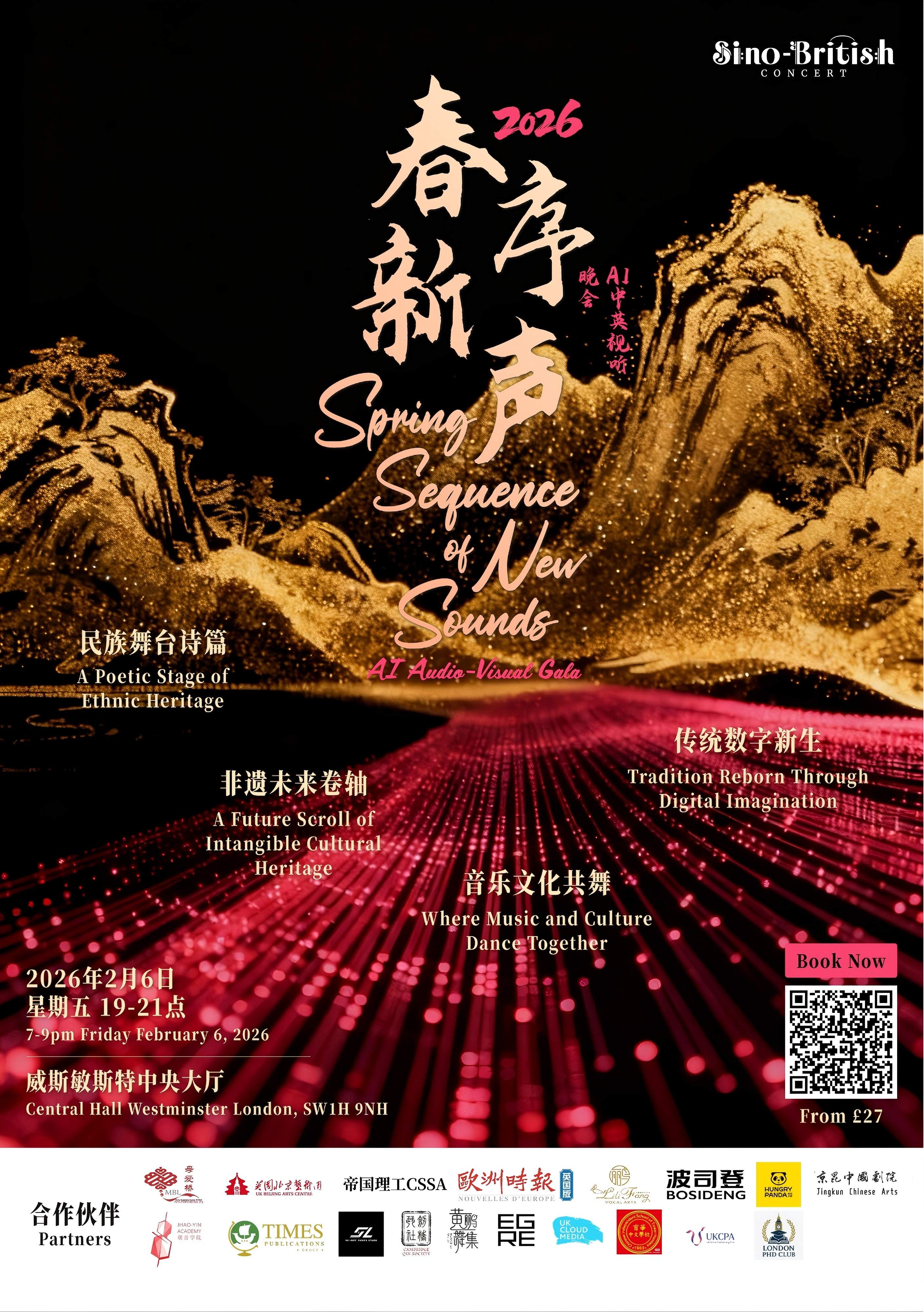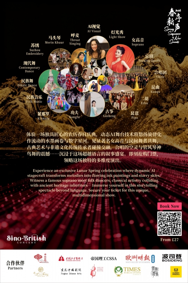 伦敦讯|2026 年 2 月 6 日,一场融合多民族文化传统、当代表演艺术与人工智能视觉创作的跨界艺术活动——2026「春序新声」中英AI视听晚会,将于伦敦威斯敏斯特中央大厅(Central Hall Westminster)正式上演。