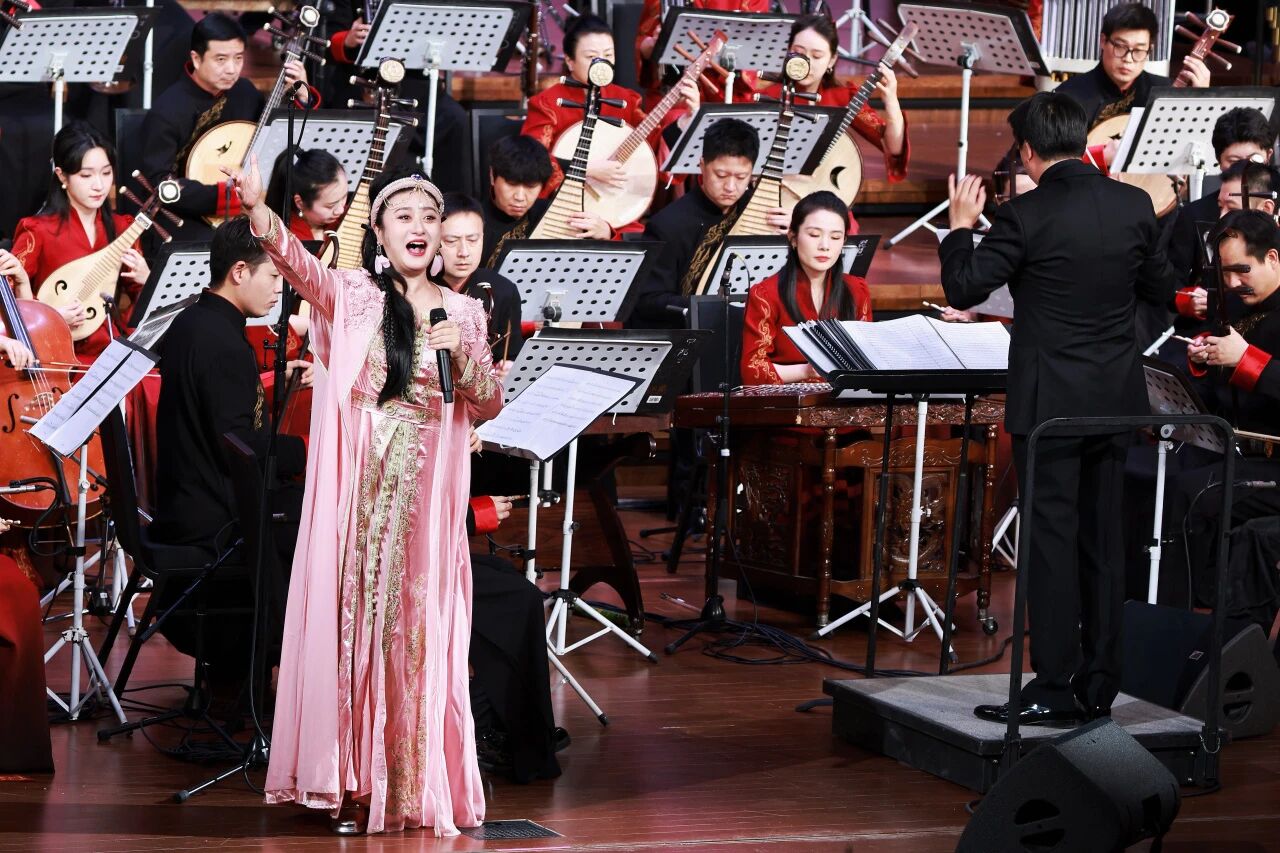 女高音陈思演绎的新疆民歌《青春舞曲》,以明亮清澈的嗓音与乐队交织呼应,仿若一幅西域阳光下的欢歌画卷在耳畔展开。