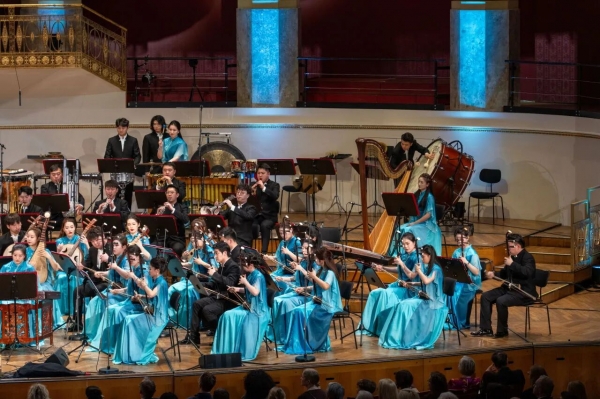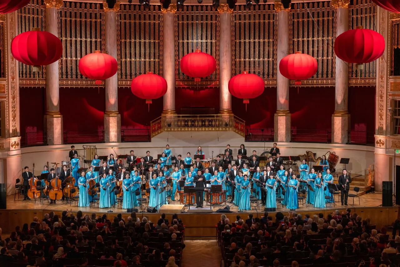 乐团精心筹备,为观众呈上了七部独具匠心的音乐佳作。既有对中国春节这一传统节日的激情庆贺,那欢快的旋律仿佛将人们带入了热闹非凡的春节庙会;亦有对祖国壮丽山河的由衷咏叹,激昂的乐章如同一幅波澜壮阔的山水画卷;既有源自千年丝路的文明遐思,那悠远的音符仿佛穿越时空,带领人们领略古丝绸之路的繁华与辉煌;也有诉说着江南水乡的柔情与浪漫的江南梦华。在丝竹弓弦的交织中,描绘出的不仅仅是太湖的潺潺水声,更是中国民族音乐源远流长的深厚底蕴与东方美学独特的神韵。
