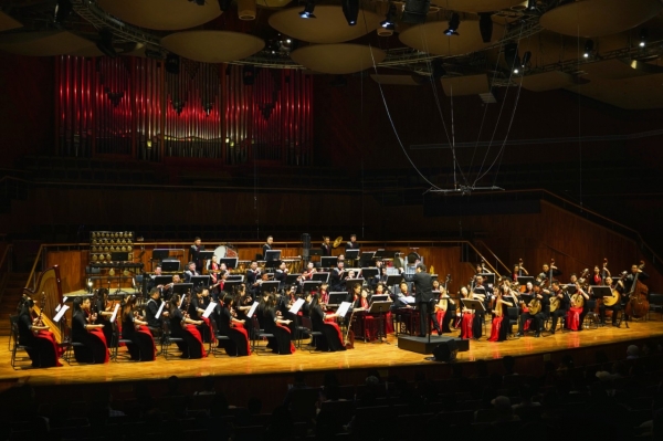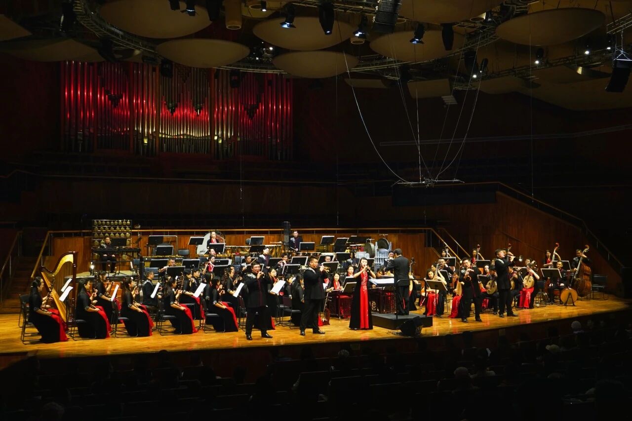 2026年2月28日晚,星海音乐厅交响乐演奏大厅内丝竹声声、鼓乐铿锵,广东民族乐团2026年新春音乐会在欢腾热烈的氛围中圆满落幕。这场乐团的年度贺岁力作,由著名指挥家张列执棒,携手“南国鼓王”陈佐辉、粤剧名家蒋文端、二胡演奏家张咏音、大提琴演奏家莫漠及歌唱家许乐、汪晨蕊等顶尖艺术家,以首首佳作勾勒出一幅岭南味十足的新春图景。