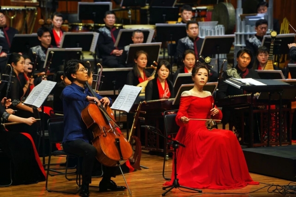 二胡演奏家张咏音与大提琴演奏家莫漠以一曲《相拥》对话中西,这也是这首作品在广东的舞台首次呈现。王云飞笔下的旋律以深情笔触诠释海上丝路的开放胸襟,二胡的柔美与大提琴的深沉交相呼应,丝丝入扣、动人心弦,传递出温暖包容的力量。