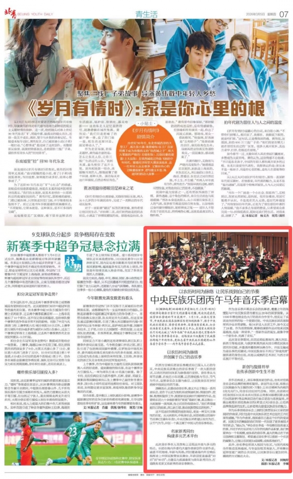 这不仅是时间跨度的重新设定,更是一种文化主体性的自觉。从元宵系列、中秋音乐会,到即将推出的端午节品牌《艾蒲年年青》,中央民族乐团希望以农历为历、以节气为节,开创一个真正属于中国人的音乐季形态。