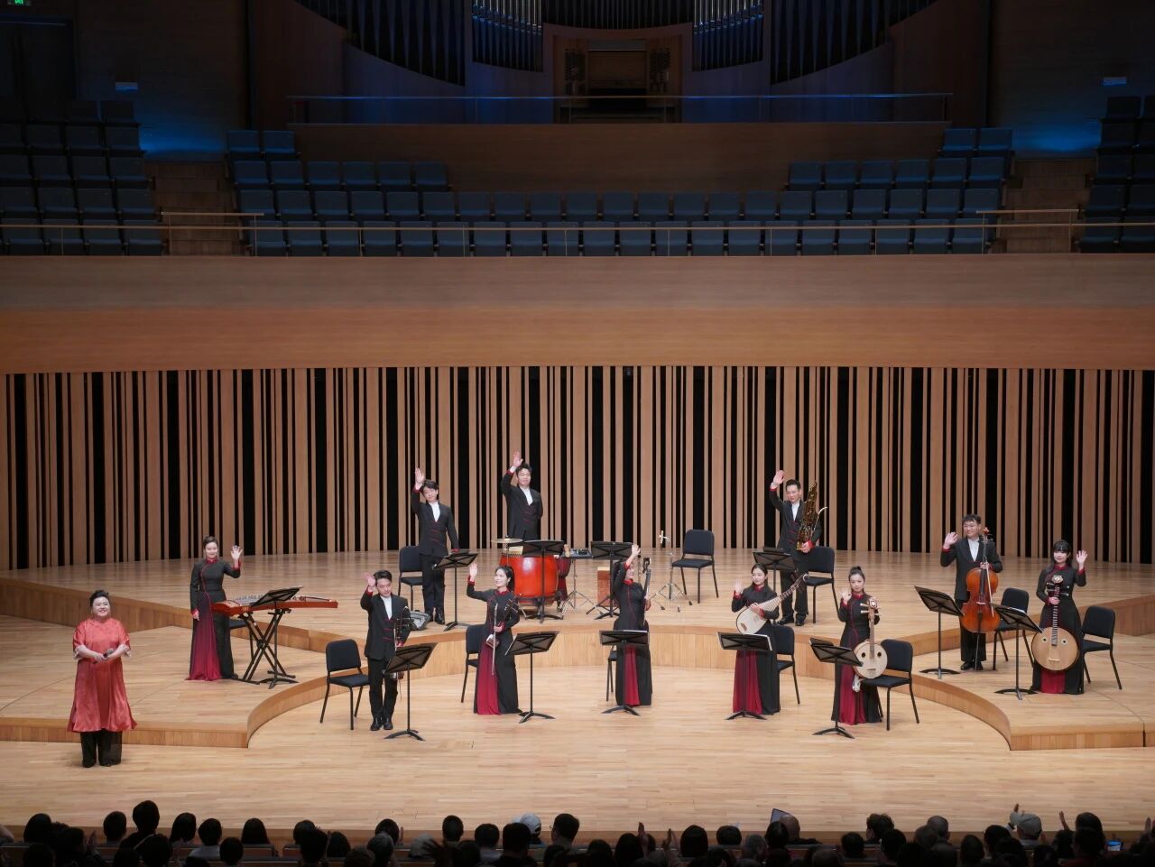 本场音乐会将传统国乐与武侠文化深度融合,经过全新编创的曲目在保留原曲风骨的同时,融入现代音乐语言与年轻化的国风审美。在《新赛马》《花好月圆》的精彩返场中,音乐会在全场经久不息的掌声与喝彩声中圆满落下帷幕。