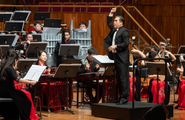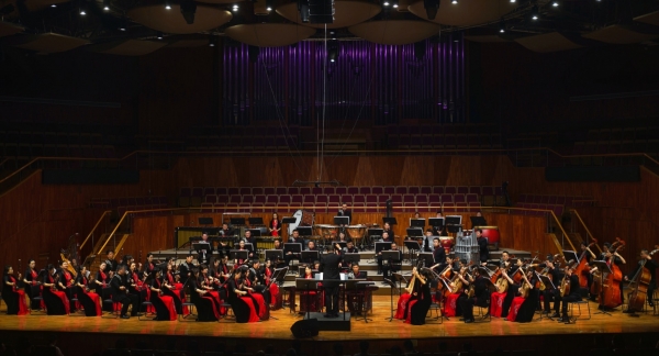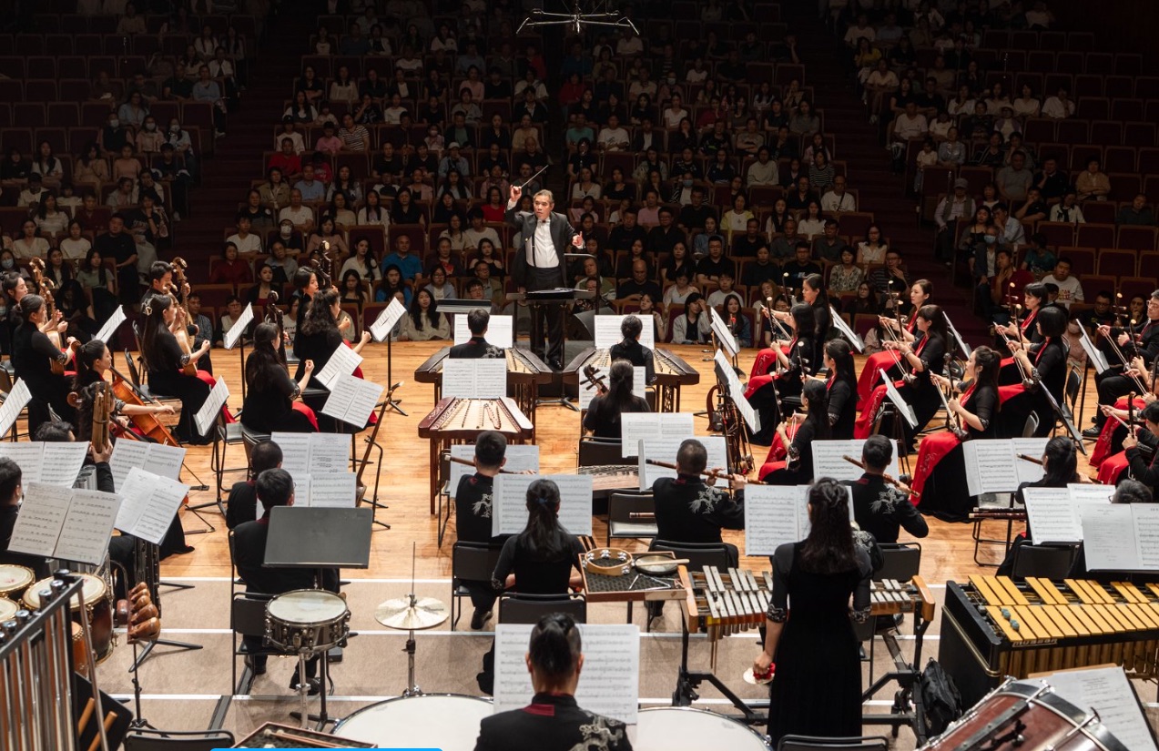 紧接着,乐团再度携手著名唢呐演奏家刘雯雯,重磅献上世界首演作品《南粤风》。这部作品扎根岭南深厚文脉,以粤地风土、民俗腔调与山海气魄为创作根基,让古老乐韵焕发崭新光彩。高亢嘹亮的唢呐声在乐团丰满的织体中穿梭起伏,将岭南的山川灵秀、市井烟火与人文风骨一一铺展,用极具张力的音符,绘就出一幅雄浑壮阔、鲜活生动的岭南音画,让听众在声声入耳的旋律中,沉浸式感受独属于南粤大地的精神气象。