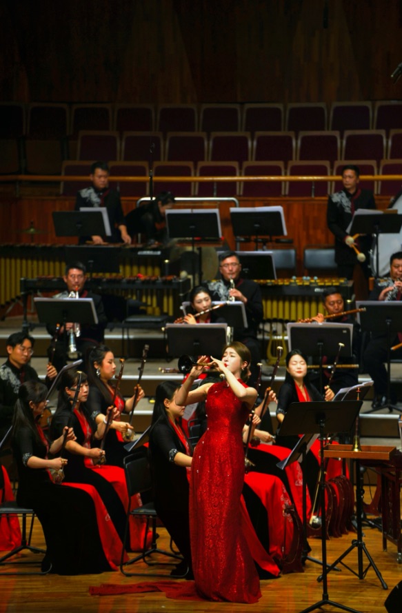 高胡与乐队协奏的《紫荆花》温柔婉转、情意绵长,清丽的旋律中饱含着深沉的家国情怀,乐声缱绻动人,让在场观众无不心潮澎湃,在悠扬曲调中感慨祖国的繁荣强盛与岁月安宁。
