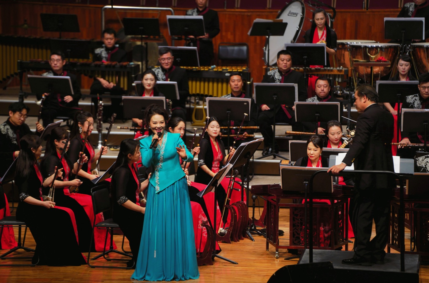 随后,著名歌唱家张莺燕盛装登台,为观众带来经典之作,《绒花》温婉清雅、纯净深情,歌声柔婉绵长,如清风拂过花间,将内敛而坚韧的情感娓娓道来;紧接着的《龙船调》则节奏明快、热情奔放,充满浓郁的乡土气息与蓬勃活力,歌声爽朗俏皮,旋律欢快跳跃,瞬间点燃全场气氛。一静一动,张莺燕与乐团默契十足、浑然天成展现出极高的艺术水准与舞台表现力,让观众在两种截然不同的音乐情绪中沉醉流连。