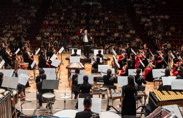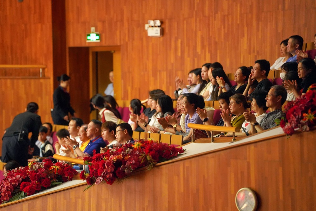 最终在压轴曲:由李复斌教授专门为本场音乐会量身创作并首演的《湾区花正红》中推向最高潮。乐曲旋律昂扬热烈、气势如虹,既饱含对岭南大地的深情礼赞,又彰显出粤港澳大湾区日新月异、欣欣向荣的时代图景。流畅激昂的乐章层层递进,和声饱满壮阔,节奏铿锵有力,当最后一个音符落下,全场掌声与欢呼声瞬间爆发,如雷霆般响彻全场,经久不息,既是对精彩演出的由衷赞叹,更是对岭南文化、时代新声的深深共鸣。