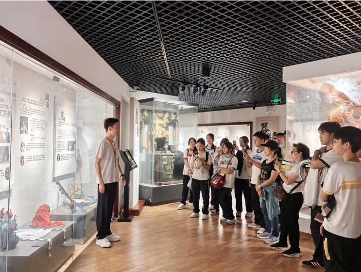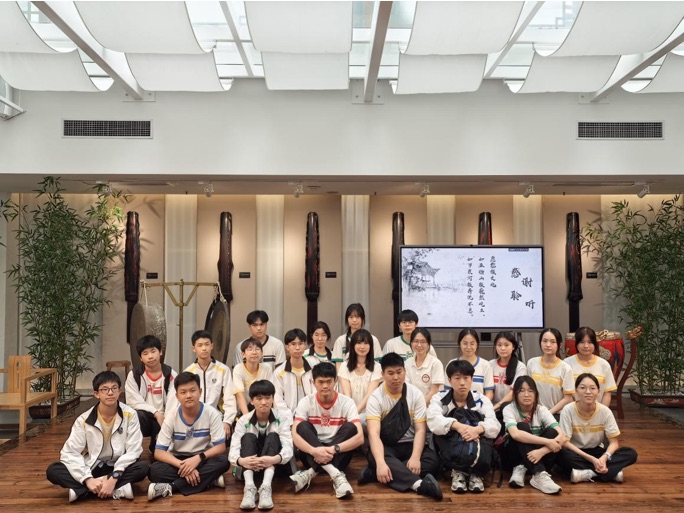 在讲解员杨珂铄的带领下,同学们走进岭南音乐馆,正式开启文化探索之旅。“一方水土养一方人 ,一方人养一方乐”,从广府到客家,从潮汕到粤西,岭南音乐馆以岭南歌乐、 岭南器乐、岭南戏乐、岭南舞乐四个板块的内容,讲解员声情并茂的讲解和激情演绎,让学生们深刻体验到了岭南音乐的独特魅力和深厚底蕴。