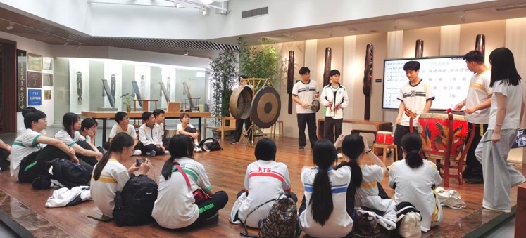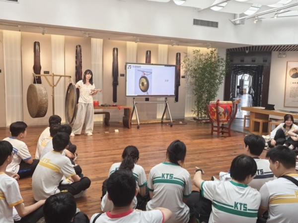 乐声连粤港,文脉润青春。为推动香港青少年深度感受中华优秀传统文化,促进粤港两地文化交流,近日,来自香港九龙工业学校乐器班的师生走进星海音乐学院音乐博物馆,在“音博文化传承传播志愿者团队”的带领下,开展了一场沉浸式的岭南音乐研学活动。本次研学包含岭南音乐馆参观、潮州鼓乐与海南黎族音乐研习,让同学们在聆听、观赏、体验、互动中,全方位读懂岭南音乐的多元魅力,在感受岭南音乐的同时厚植家国情怀。