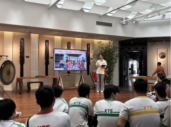 潮州鼓乐研学课程围绕潮州锣鼓展开,由音博文化传承传播志愿者团队成员黄思佳进行授课讲解。课中她运用生动易懂的语言,带领同学们感受被誉为“东方交响乐”的潮州鼓乐。研学过程中同学们演奏潮州锣鼓,并以锣、钹等乐器配合,音乐演奏阵容整齐、气势恢宏,在撼人心魄的鼓点中大家感受到了潮州锣鼓的魅力。