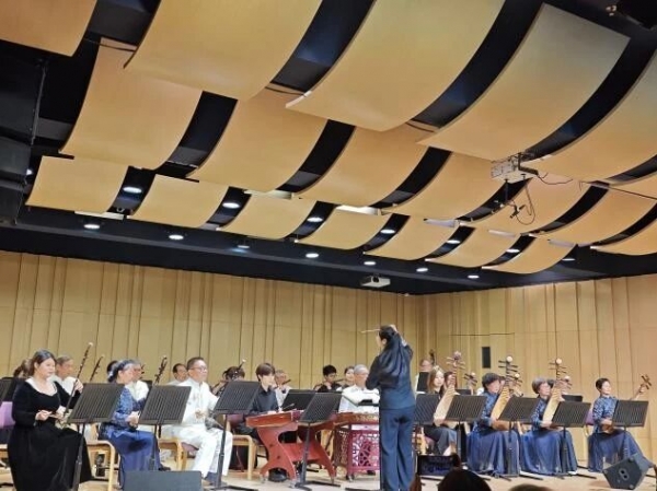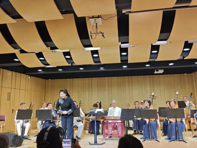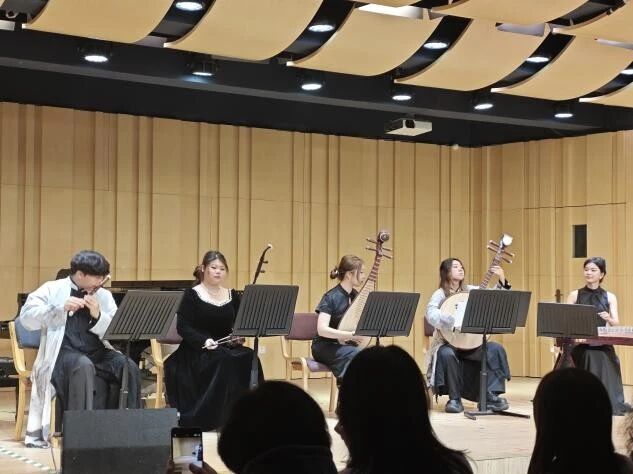本次音乐会的另一重要价值在于搭建了民间音乐团体与高校艺术教育的交流平台。 作为上海市级非物质文化遗产,大场江南丝竹是江南传统器乐文化的重要分支,兼具江南水乡的温婉雅致与民间艺术的鲜活烟火气。而大场新华国乐社作为该非遗项目历史最悠久的核心传承团体,多年来始终坚守"承上启下,推陈出新"的宗旨,一方面精研《欢乐歌》《紫竹调》等传统曲目,一方面大胆创新,积极排演新派丝竹作品。