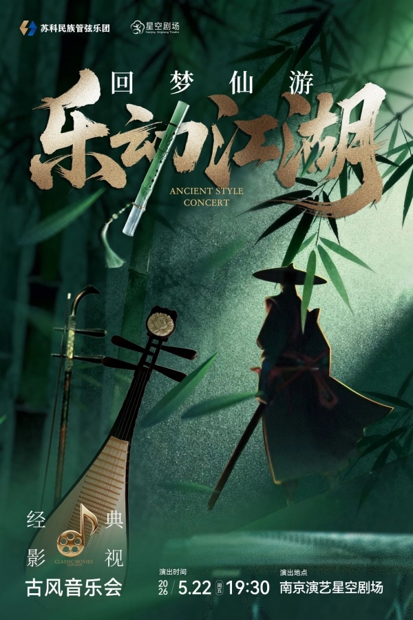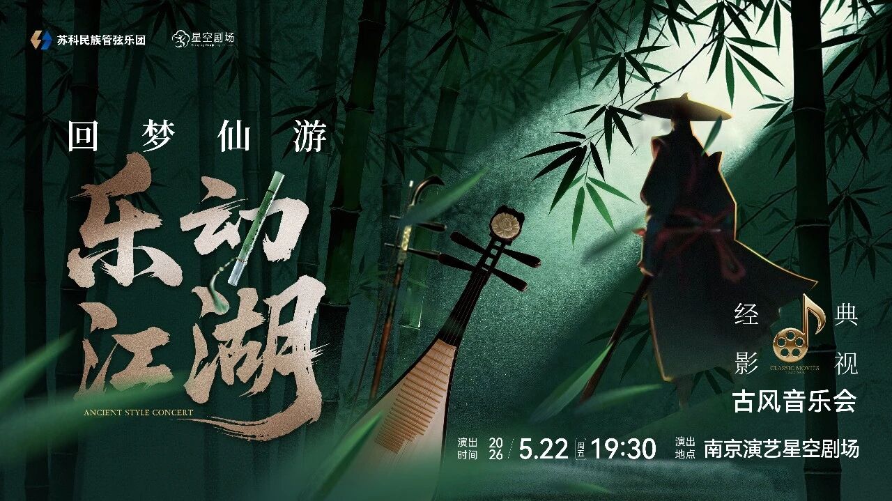 当丝竹管弦碰撞江湖豪情,当影视金曲重燃岁月情怀。5月22日晚19点30分,苏科民族管弦乐团将空降南京市星空剧院,奏响“回梦仙游 乐动江湖 经典影视古风音乐会”。本场演出精选12首横跨影视、古风、武侠领域的殿堂级曲目,以民族管弦乐的独特韵味,重塑经典记忆,打造一场集豪情、柔情、怀旧于一体的沉浸式音乐盛宴,让观众在一呼一吸间,穿越时空,重遇心中的江湖与旧梦。